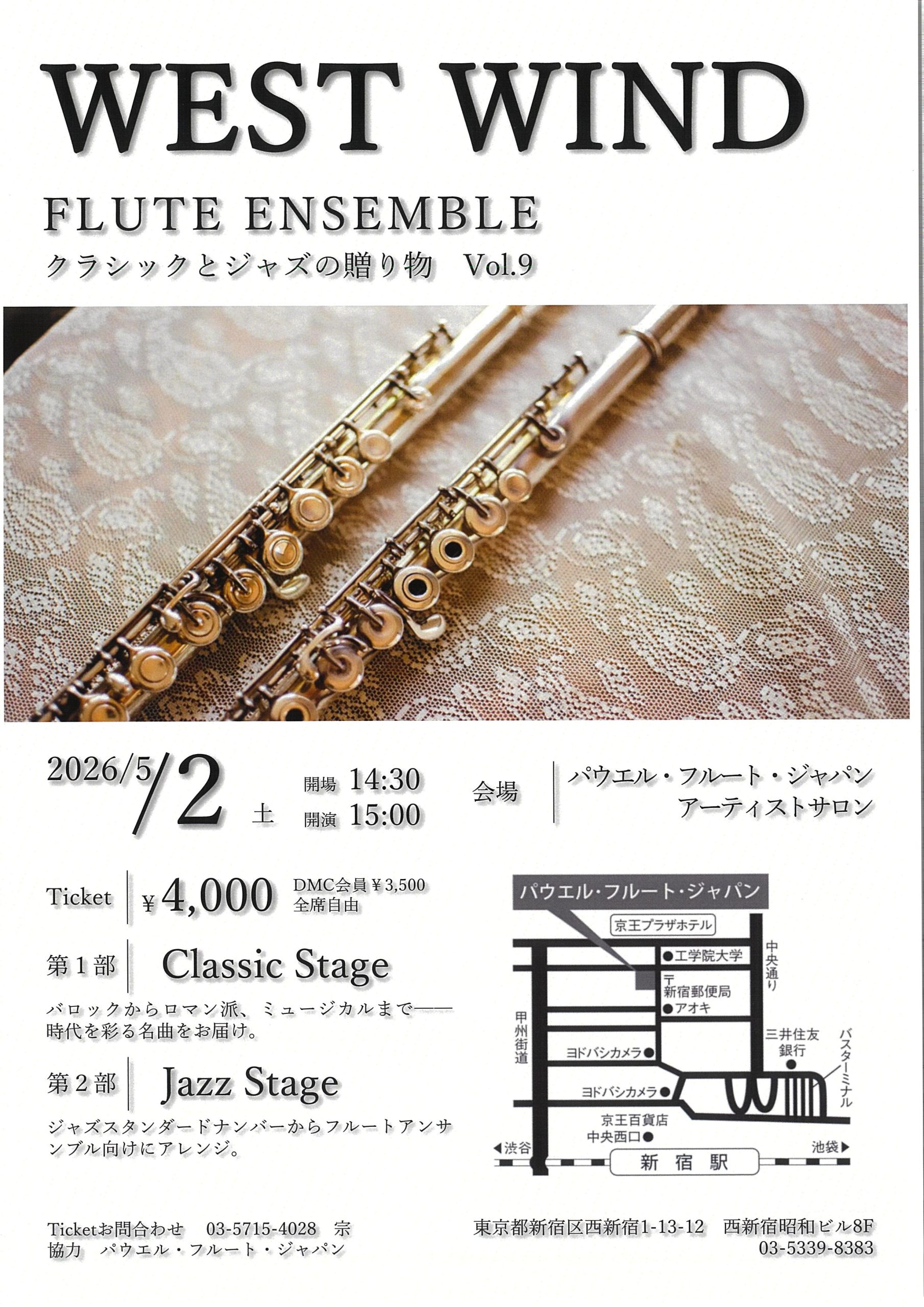 | 出演者 | 宗 美沙子、井上信平、野崎和宏、中村和美、山根尊典、宮川香純、小口志穂、上妻志的、小杉奈津子(以上Fl) |