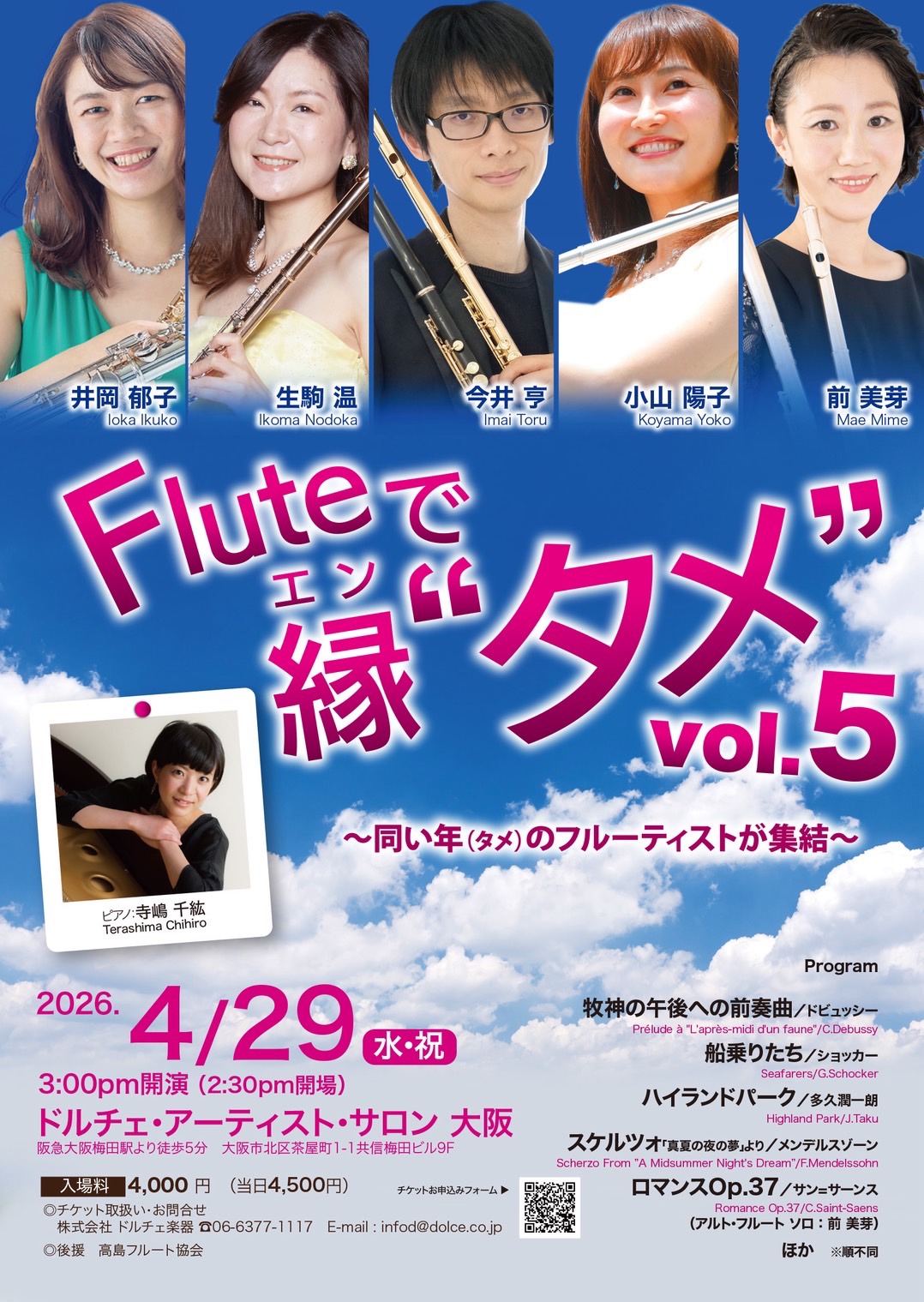 | 出演者 | フルート| 井岡 郁子 生駒 温 今井 亨 小山 陽子 前 美芽 ピアノ|寺嶋 千紘 |
