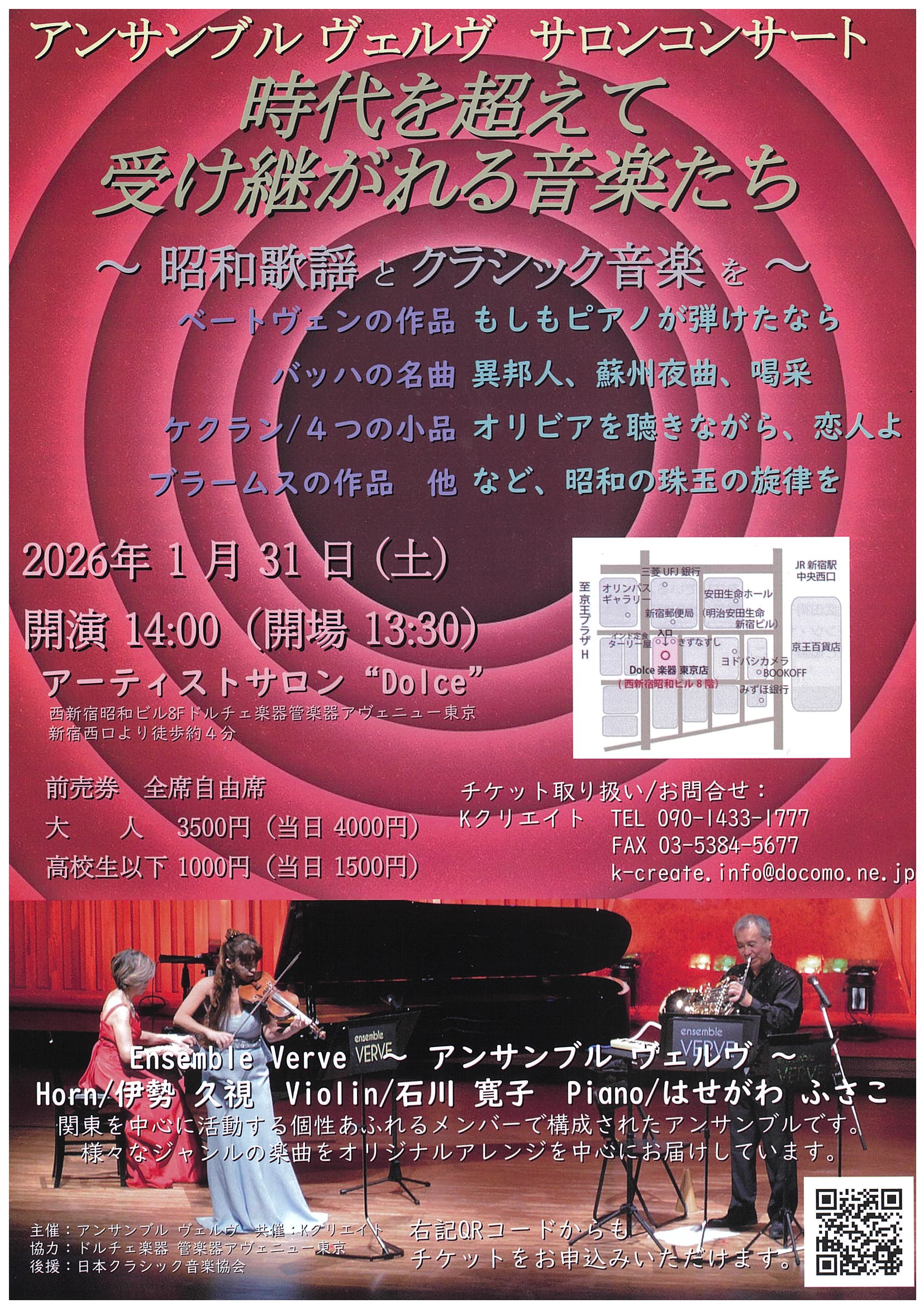 ※ミニコンサート終演後の新年会は、準備の関係により締め切りました。 ドルチェ楽器東京店 金管サロン Tel:03-5909-1771 E-mail:tokyo-brass@dolce.co.jp |