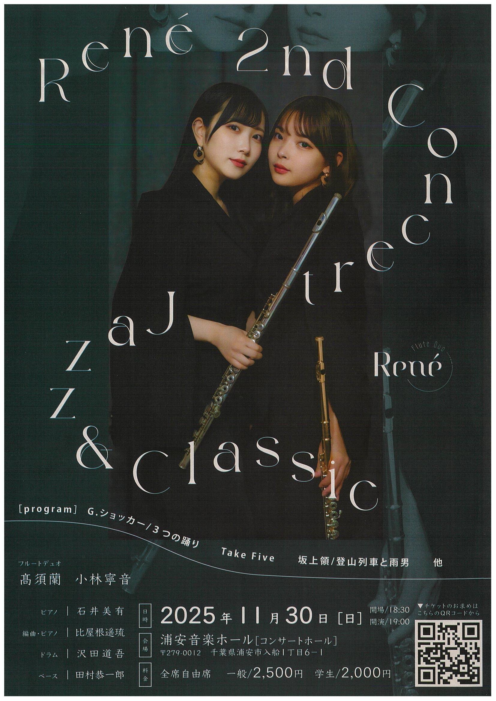出演者 | 髙須 蘭(フルート) 小林 寧音(フルート) 石井 美有(ピアノ) 比屋根 遥琉(編曲・ピアノ) 沢田 道吾(ドラム) 田村 恭一郎(ベース) |