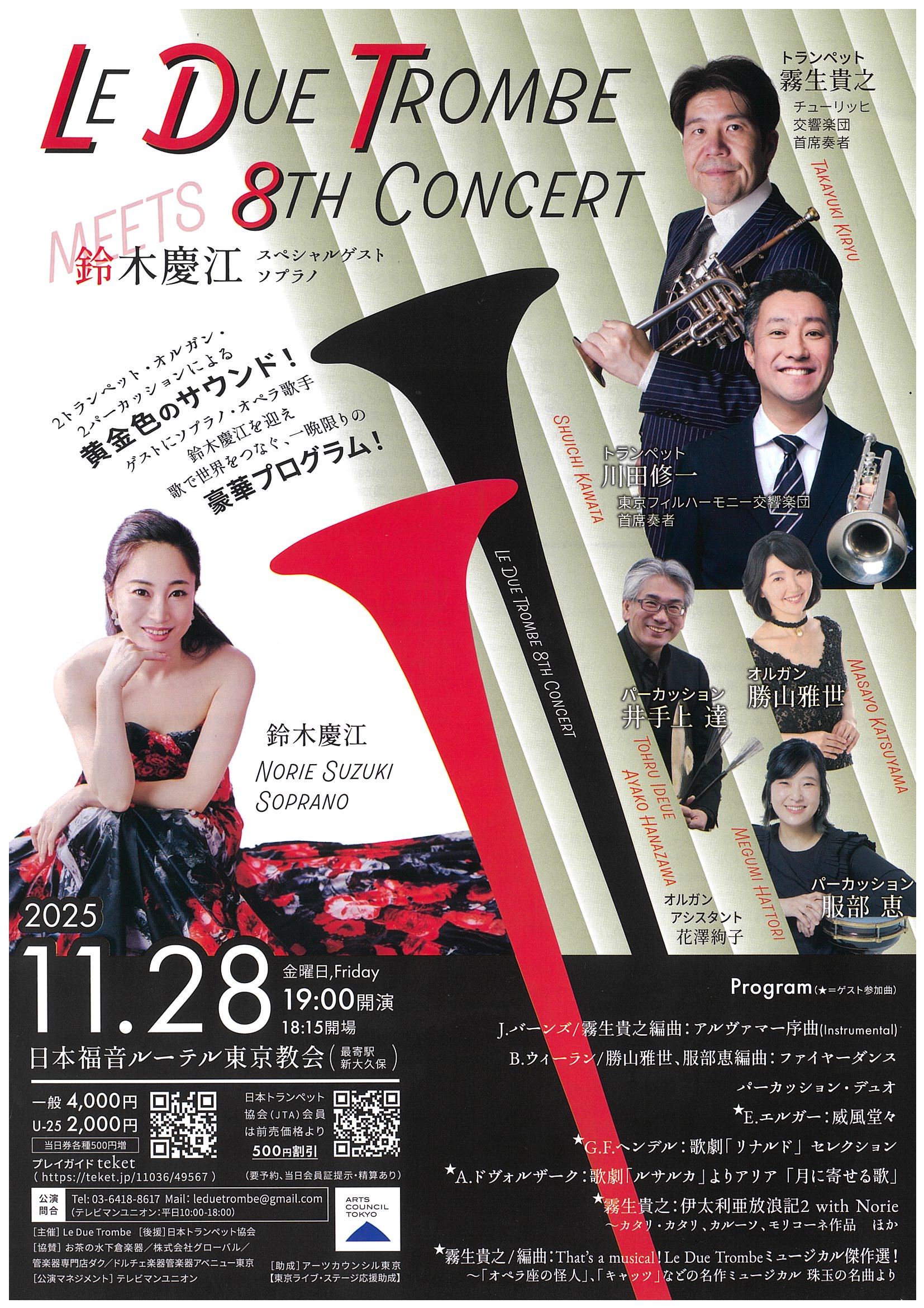 出演者 | 霧生 貴之(トランペット) 川田 修一(トランペット) 鈴木 慶江(ゲストソプラノ) 勝山 雅世(オルガン) 井手上 達(パーカッション) 服部 恵(パーカッション) |