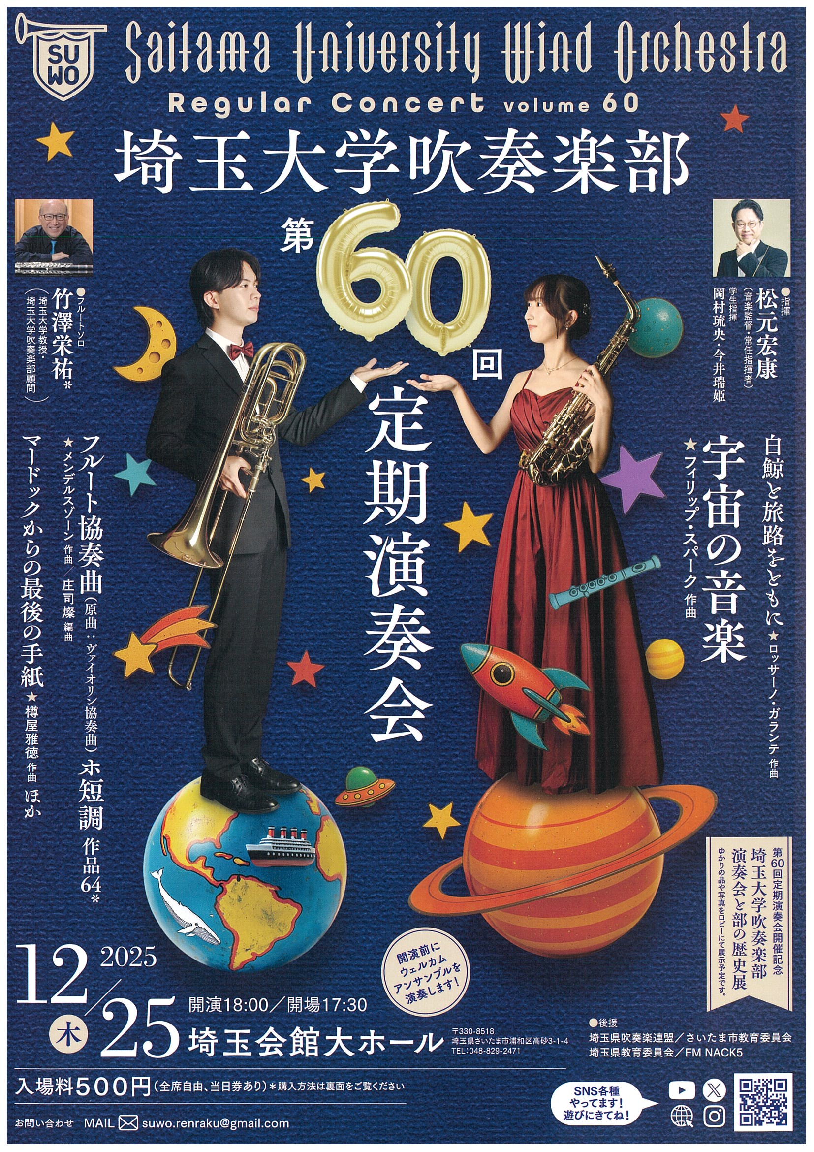 | 出演者 | 松元 宏康(指揮) 竹澤 栄祐(フルートソロ) 埼玉大学吹奏楽部(吹奏楽) |