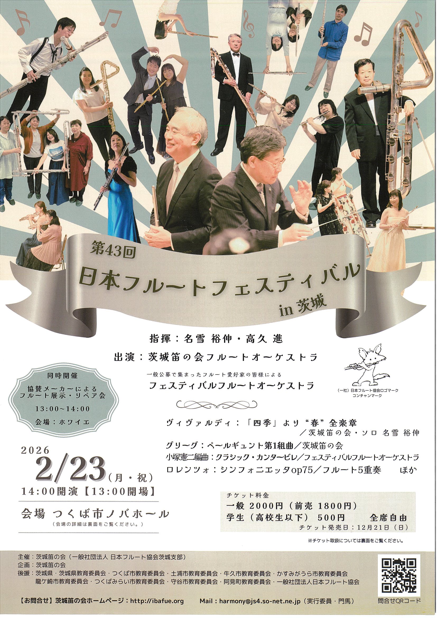 | 出演者 | 名雪 裕伸(フルート・指揮) 髙久 進(フルート・指揮) 茨城笛の会フルートオーケストラ |