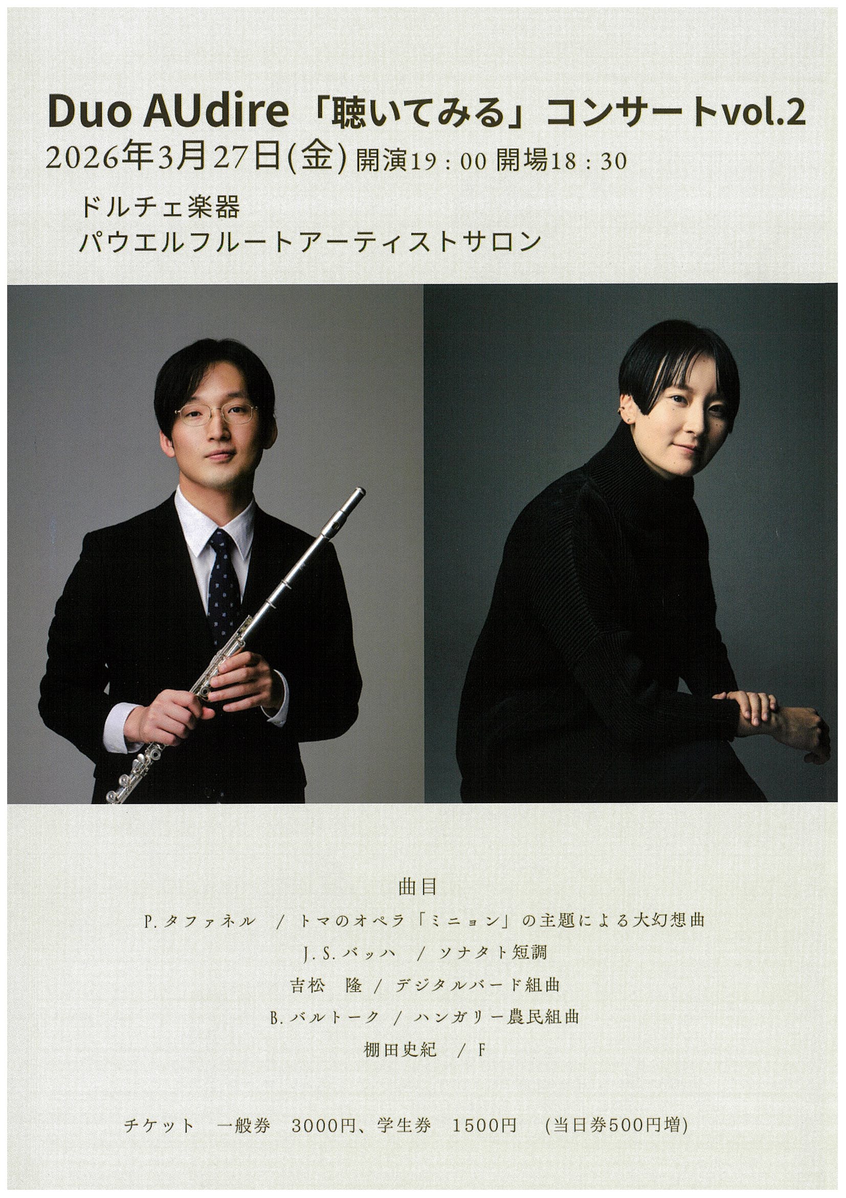 | 出演者 | 山根 尊典(フルート) 津田 大介(ピアノ) 久保 順(フルート) |