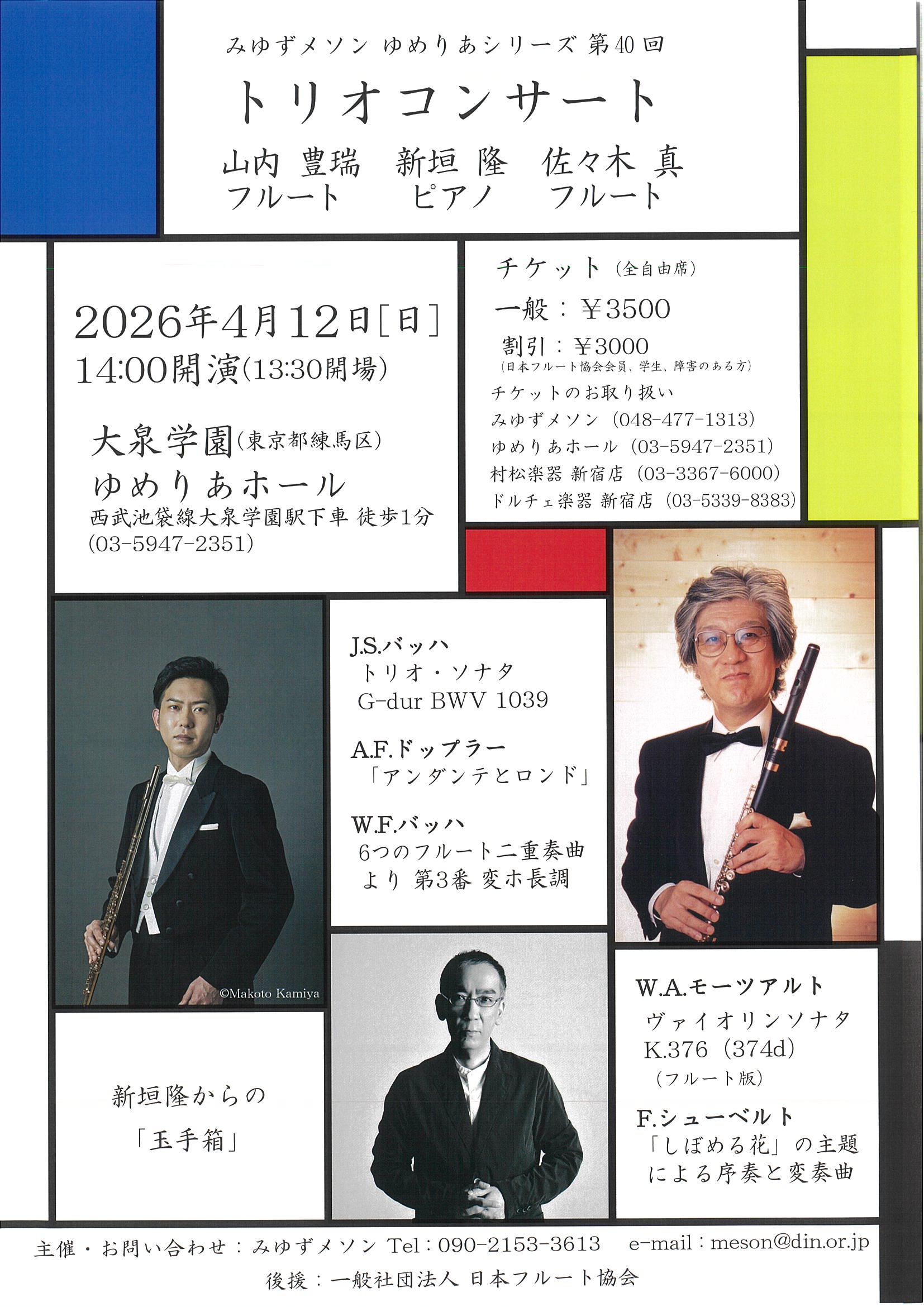 | 出演者 | 佐々木 真(フルート) 山内 豊瑞(フルート) 新垣 隆(ピアノ、作曲) |