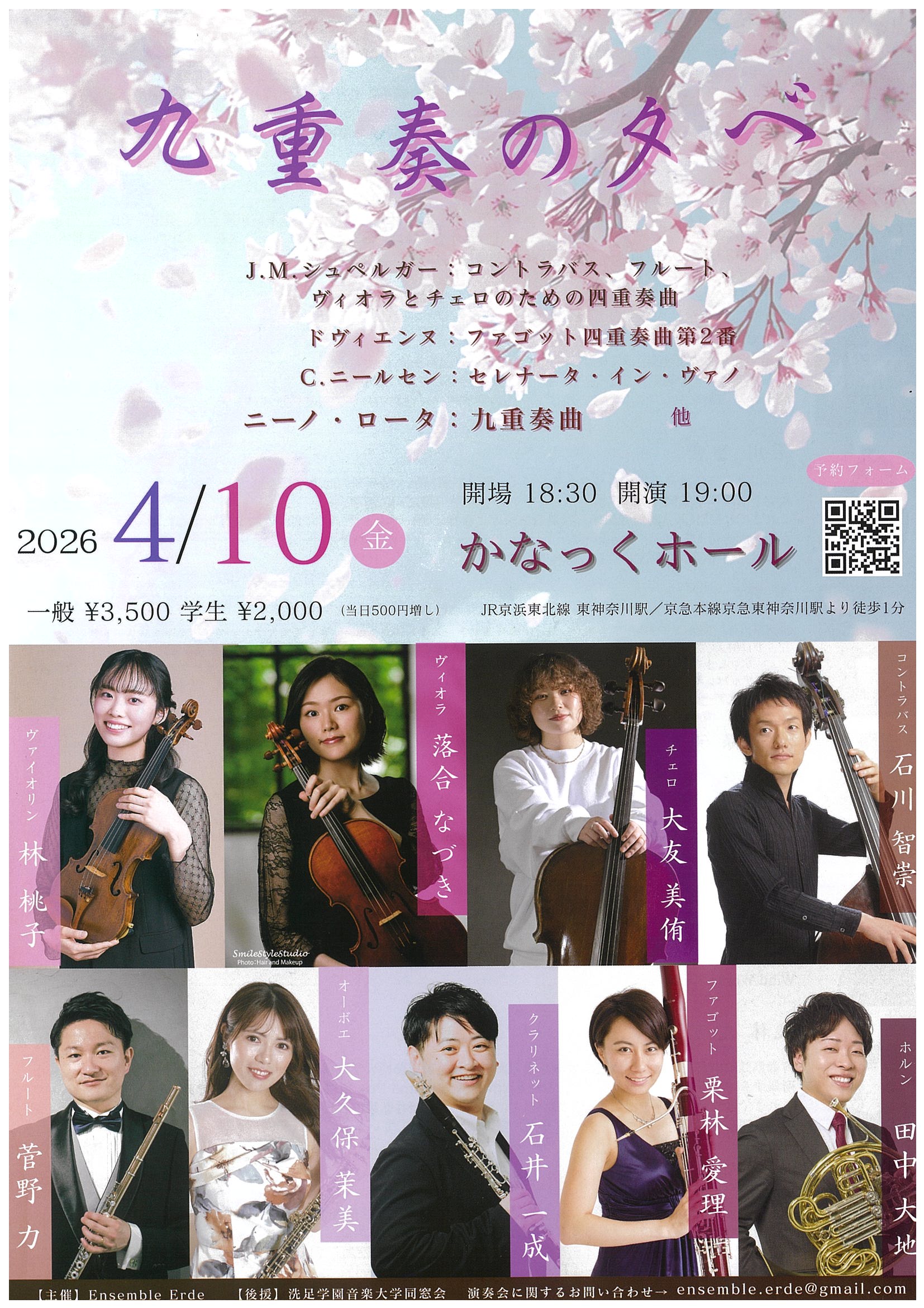 | 出演者 | 林 桃子(ヴァイオリン) 落合 なつき(ヴィオラ) 大友 美侑(チェロ) 石川 智崇(コントラバス) 菅野 力(フルート) 大久保 茉美(フルート) 石井 一成(クラリネット) 栗林 愛理(ファゴット) 田中 大地(ホルン) |