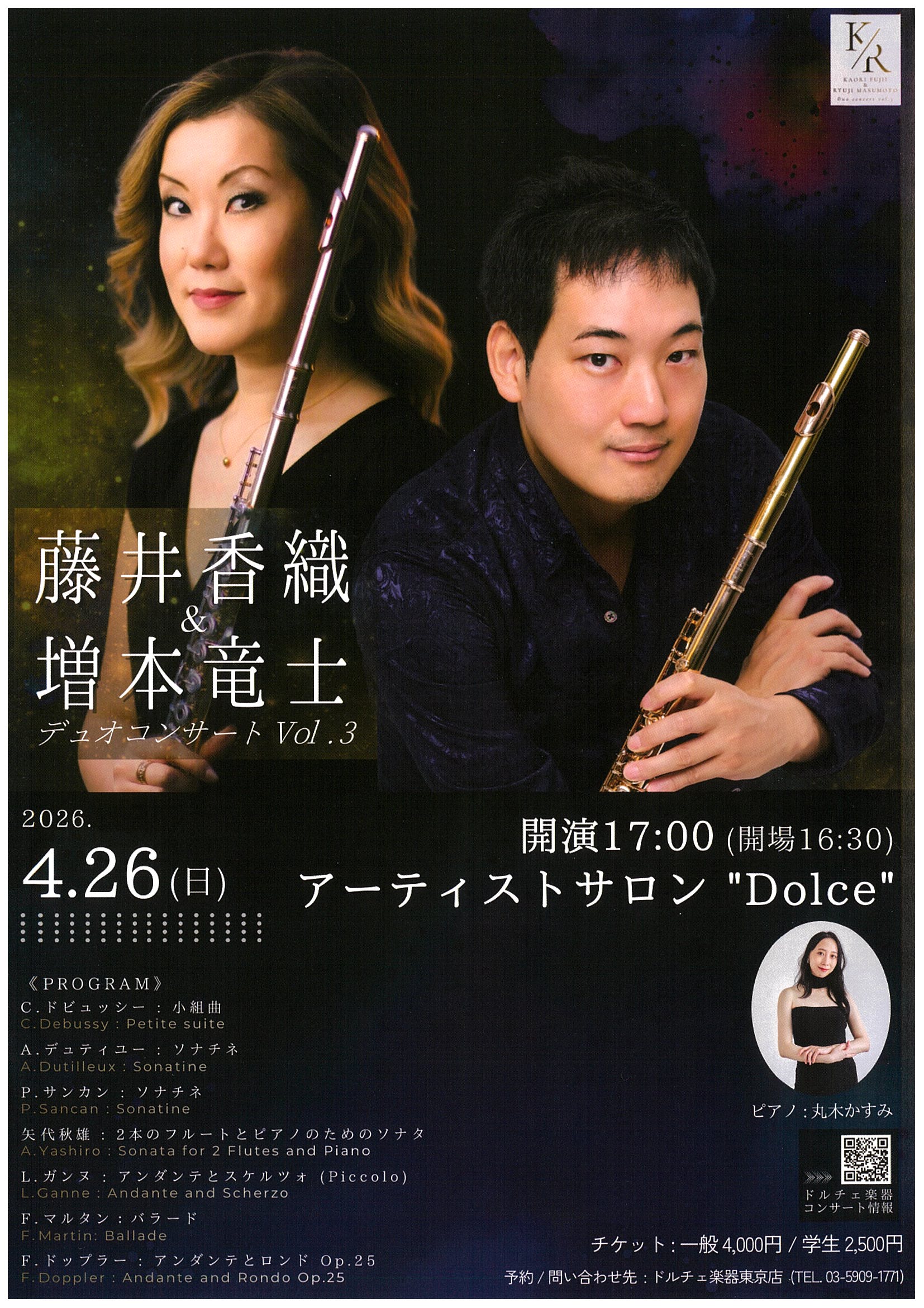 | 出演者 | 藤井 香織(フルート) 増本 竜士(フルート) 丸木 かすみ(ピアノ) |