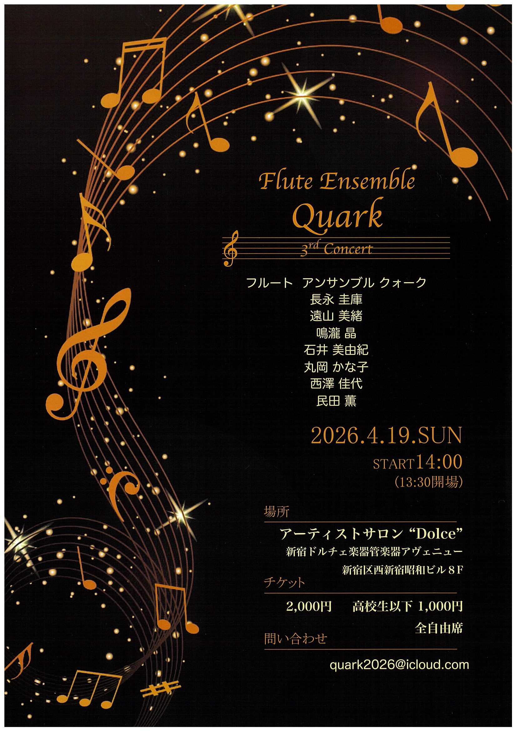 ドルチェ楽器東京店 フルートサロン Tel:03-5909-1771 E-mail:tokyo-flute@dolce.co.jp |