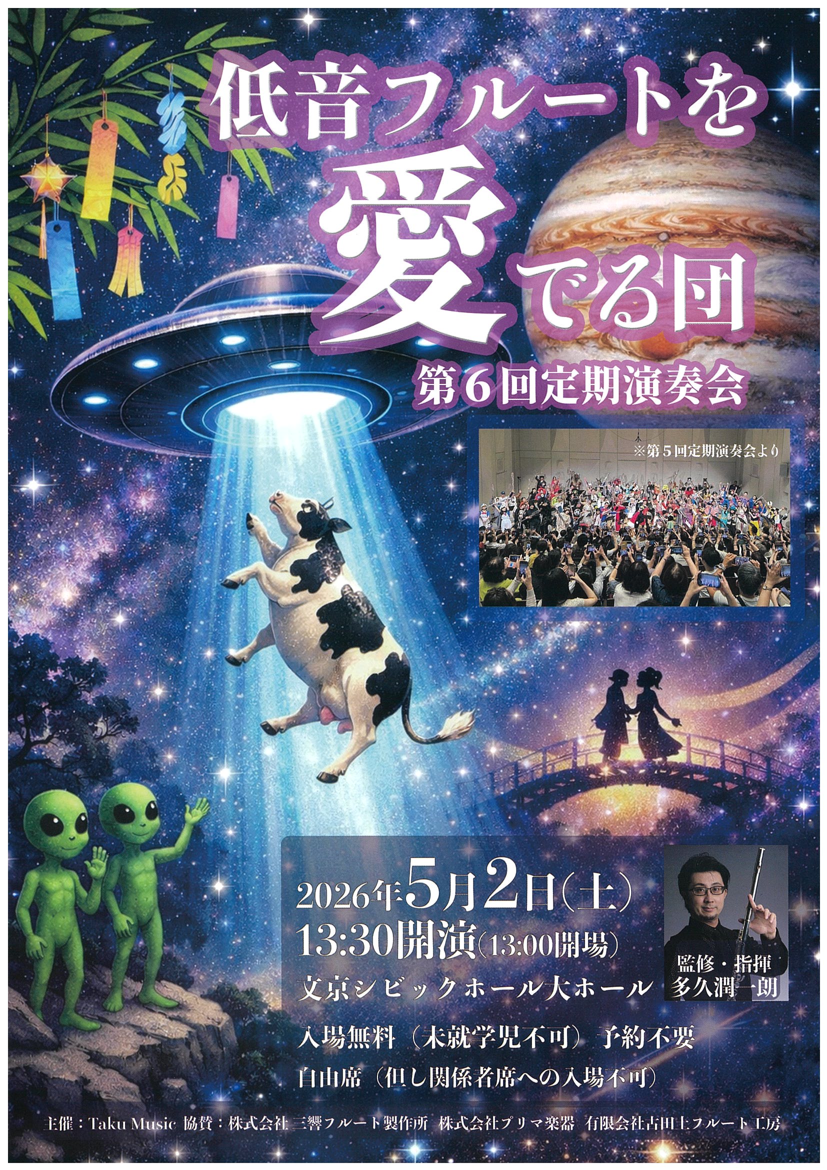 | 出演者 | 野口 博司(フルート) 赤木 香菜子(フルート) 岡本 謙(フルート) 金野 紗綾香(フルート) 西田 紀子(フルート) 藤村 恵子(フルート) 前田 美保(フルート) 向井 理絵(フルート) 山口 章代(フルート) 横山 由布子(フルート) |