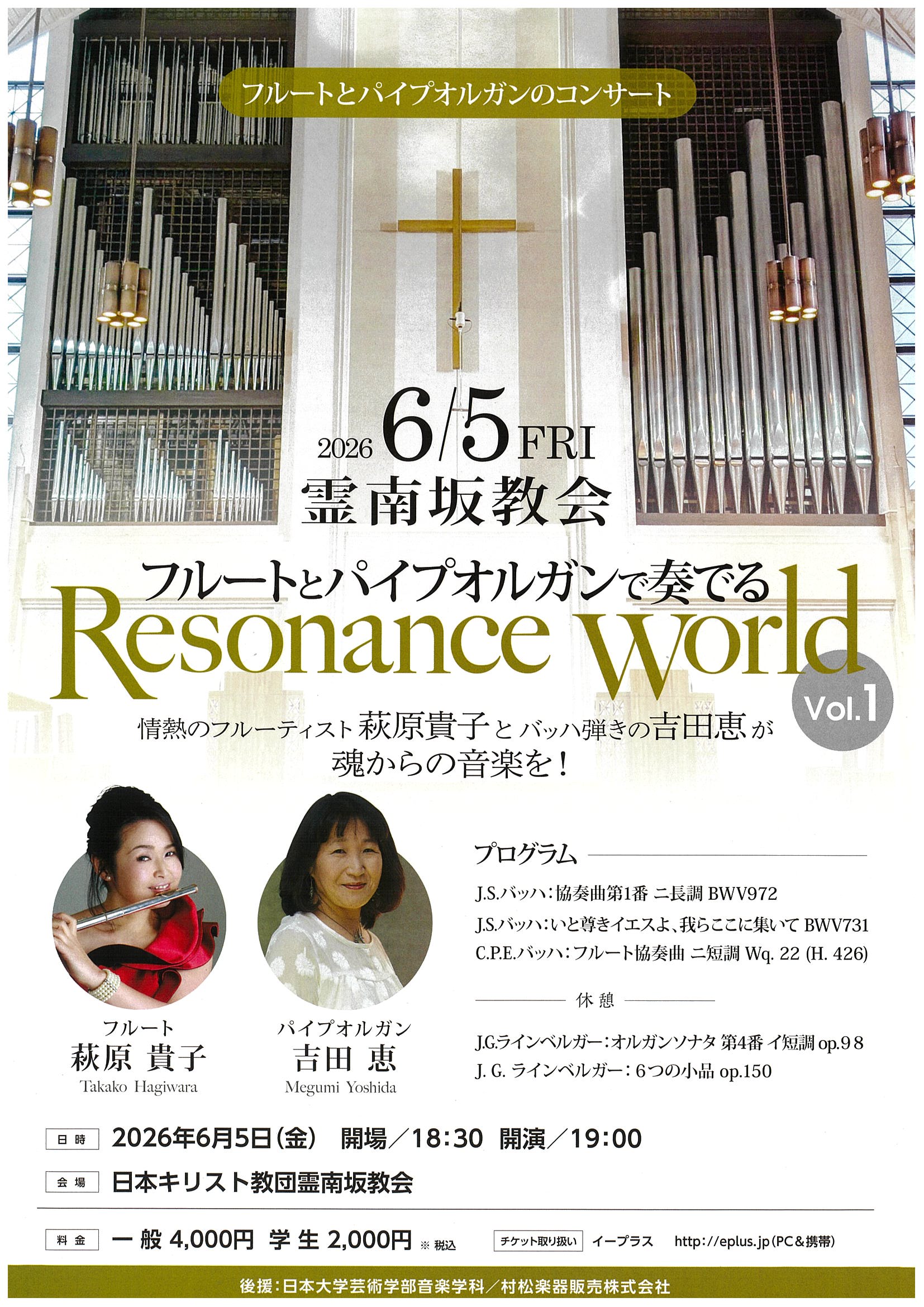 | 出演者 | 萩原 貴子(フルート) 吉田 恵(パイプオルガン) |