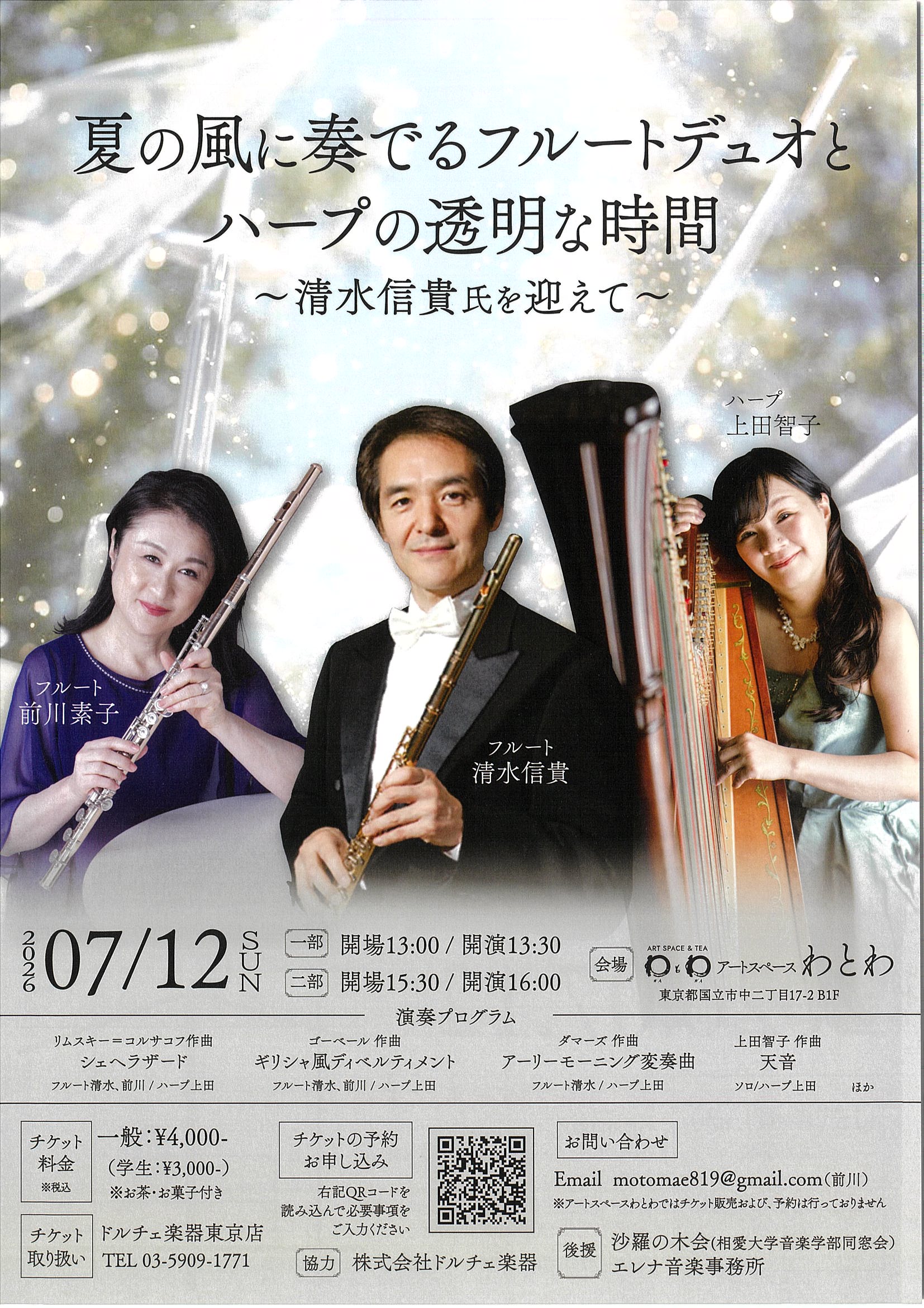 夏の風に奏でるフルートデュオとハープの透明な時間~清水信貴氏を迎えて~