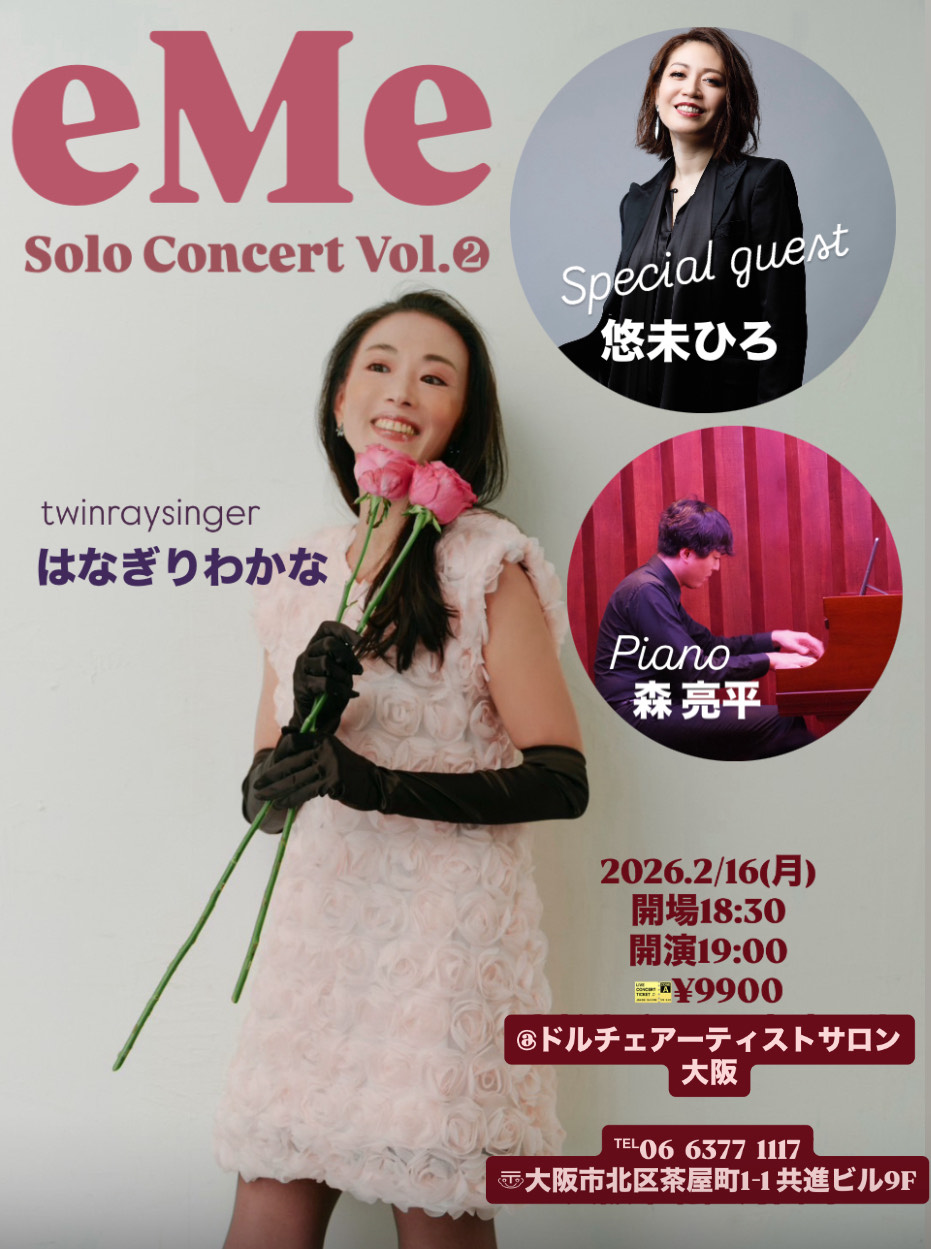 | 出演者 | 華桐 わかな|Vocal 森 亮平|Piano 悠未 ひろ|Special guest |