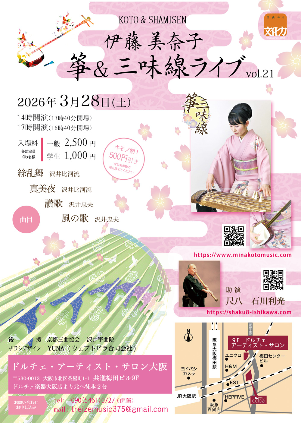 | 出演者 | 筝&三味線|伊藤 美奈子 尺八|石川 利光(助演) |
