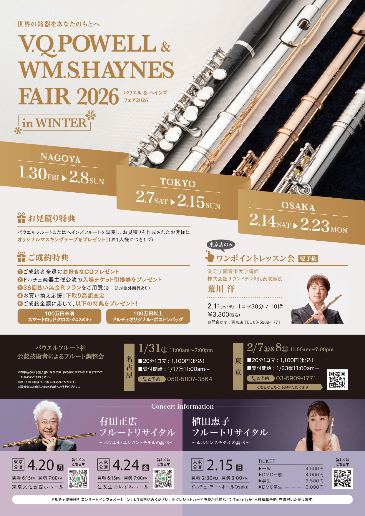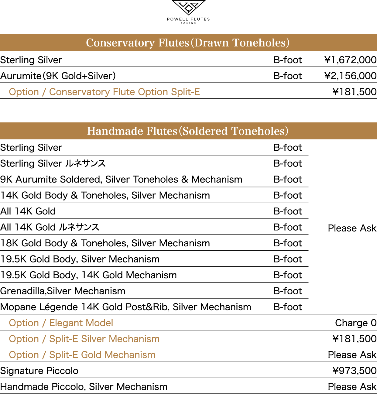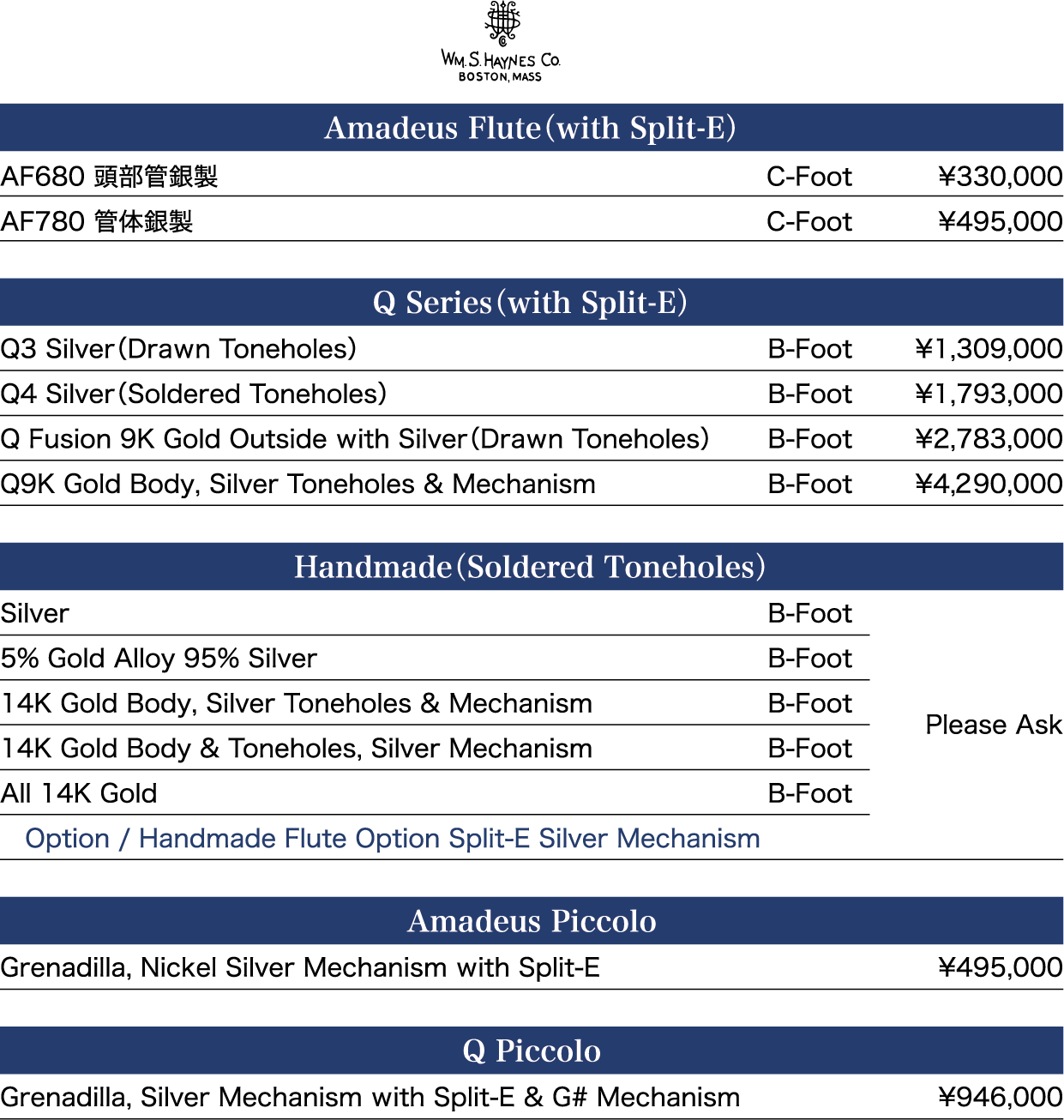 ※パウエルフルートとヘインズフルートは2026年1月より価格改定させていただきます。
