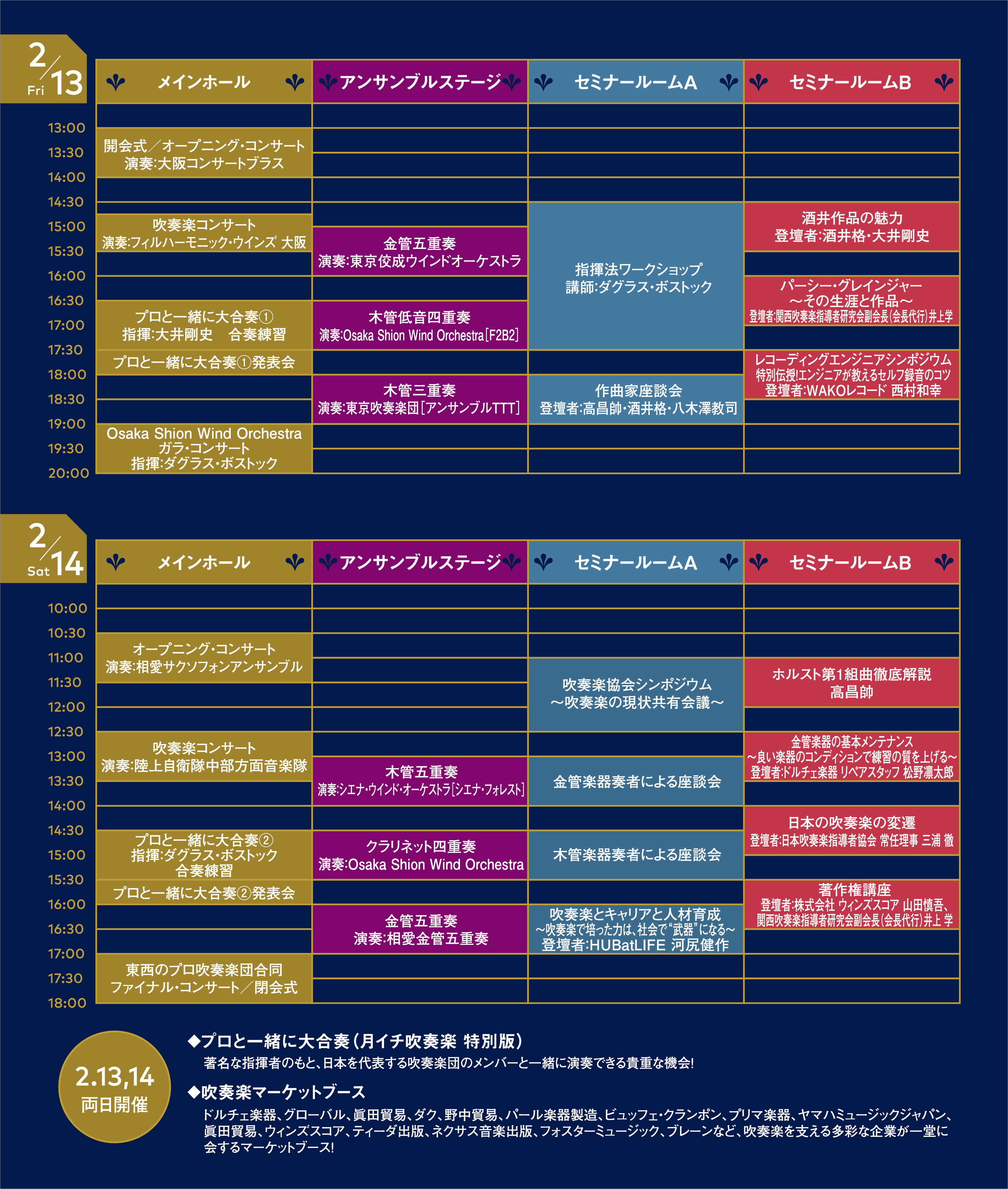 日本を代表するプロ吹奏楽団が集結し、数多くの公演を展開。