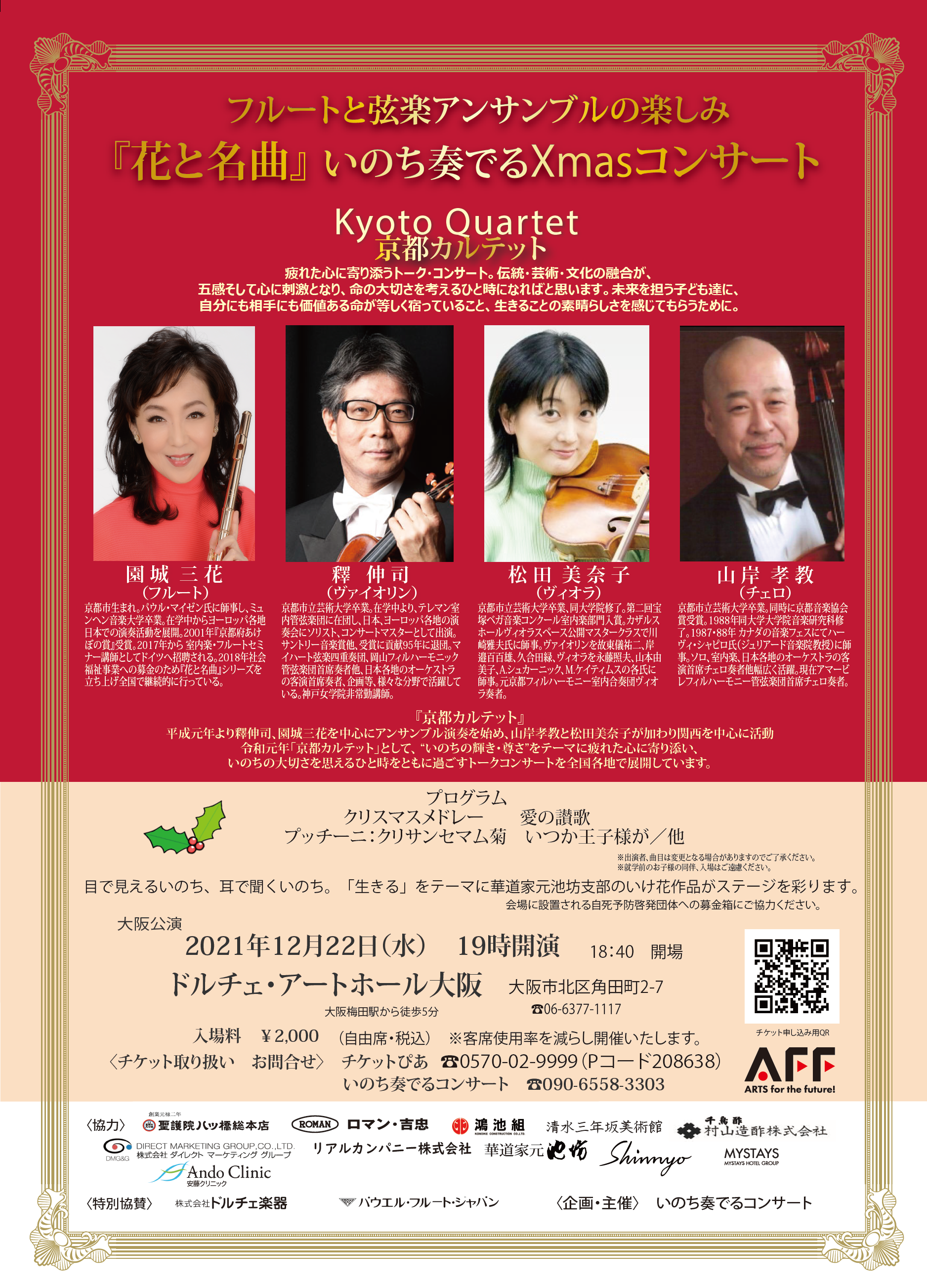 フルートと弦楽アンサンブルの楽しみ 『花と名曲』いのち奏でるXmasコンサート12月22日