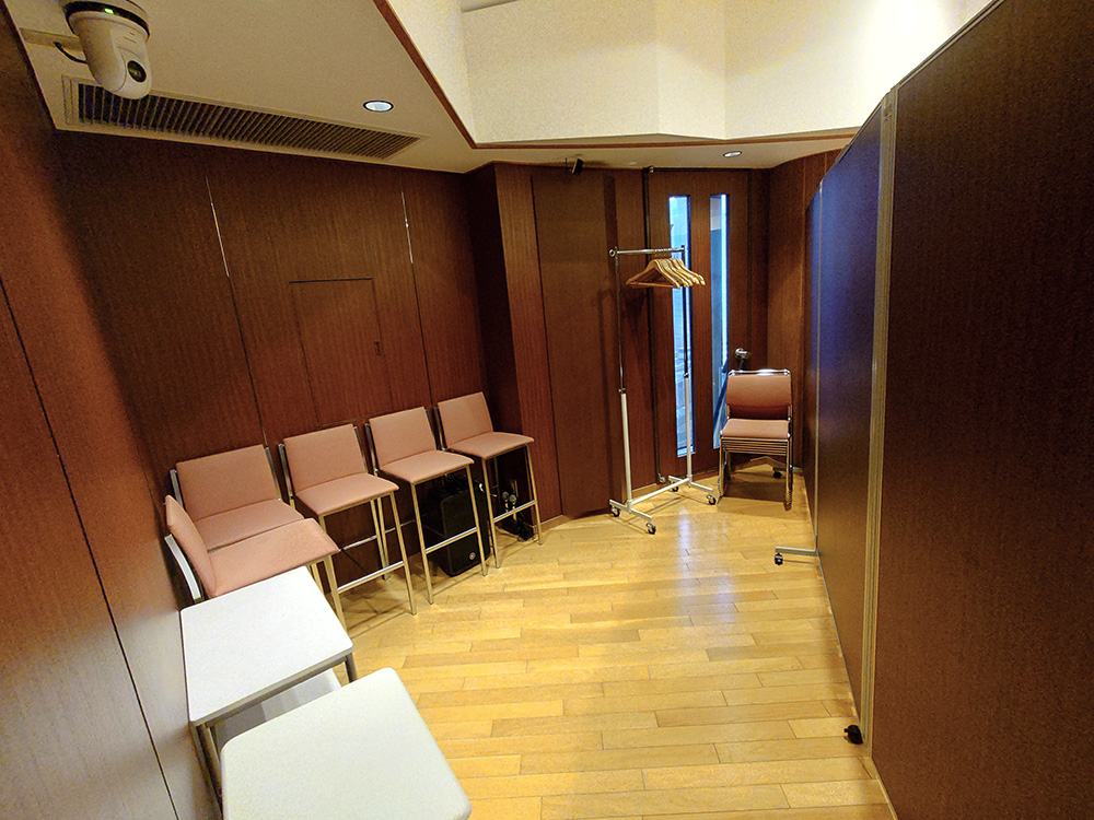 楽屋はサロン内の間仕切りをご利用いただく形となります。